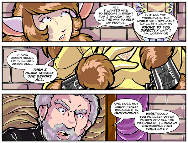Panel 1: Add a comma to “knight”.